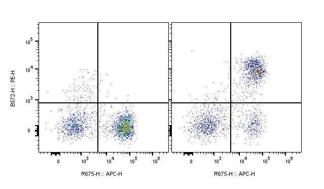 | Recommended Usage | For flow cytometric staining, it is recommended to use less than 0.1 ug of this reagent per 0.5-1.0 million cells in a 100 µL volume. Optimal reagent performance should be determined by titration for each specific application |