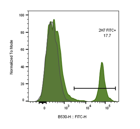 CD20 is a 33-37 kD, four transmembrane spanning protein, also known as B1 and Bp35. CD20 is expressed on pre-B-cells, resting and activated B cells (not plasma cells), some follicular dendritic cells, and at low levels on a T cell subset. CD20 is heavily phosphorylated on activated B cells and malignant B cells. Homo-oligomeric complexes of CD20 are thought to form Ca2+ conductive ion channels in the plasma membrane of B cells. The CD20 molecule is involved in B-cell activation and is associated with various Src family kinases (Lyn, Lck, Fyn). It exists in a complex with MHC class I and II, CD53, CD81, and CD82. The epitope recognized by clone 2H7 has been mapped to the sequence YNCEPANPSEKNSPST, which lies in the large extracellular loop of human CD20.