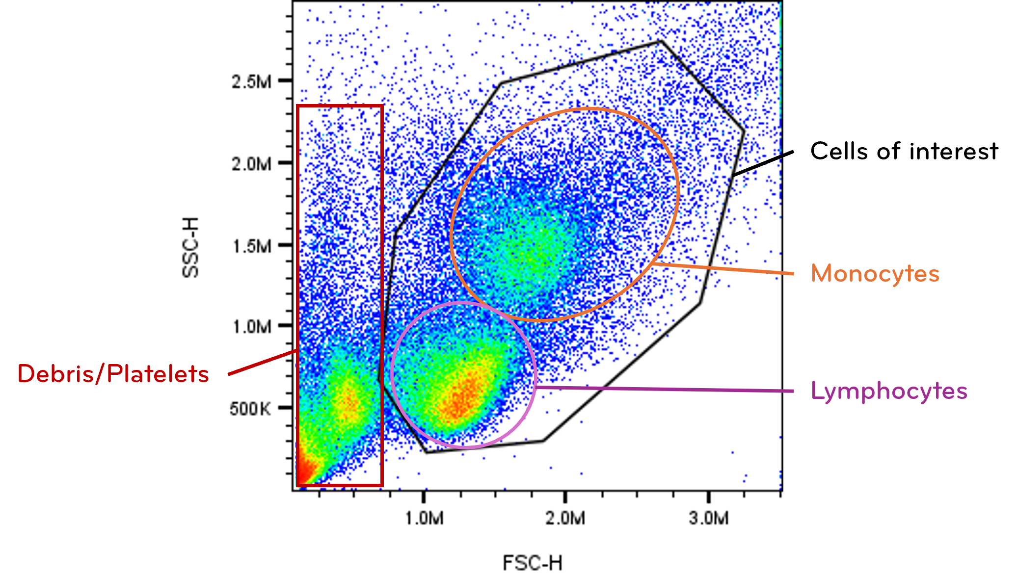 This structural map enables exclusion of irrelevant events before analyzing fluorescence data. Removing debris and noncellular particles improves downstream clarity and statistical accuracy. Although scatter correlates with physical properties, it is influenced by instrument configuration and optical alignment. Interpretation should therefore focus on relative comparisons within experiments rather than absolute size determination. Establishing a clean scatter gate enhances the reliability of all subsequent analyses.