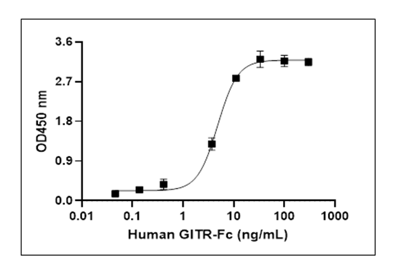 | Sources | Recombinant Human GITR/TNFRSF18 (Gln26-Glu161) with C-terminus Fc-tag is expressed in CHO cell. |