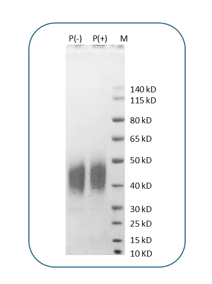 The protein has a predicted molecular weight of 24.2 kDa. Under DTT-reducing conditions, it migrates at approximately 35 kDa on SDS-PAGE.