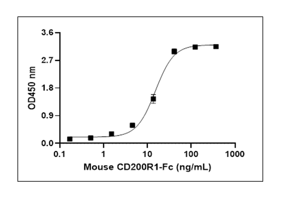 | Sources | Recombinant Mouse CD200R1 (Thr26 - Pro238) with C-terminus Fc-tag is expressed in CHO cell. |