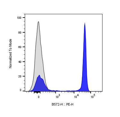 | Recommended Usage | For flow cytometric staining, it is recommended to use 5 µL of this reagent per 0.5-1.0 million cells in a 100 µL volume. Optimal reagent performance should be determined by titration for each specific application. PE has an excitation max at 565 nm and an emission max at 575 nm. |