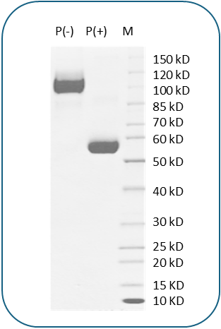 | Molecular Weight | This protein has a predicted molecular weight of 52 kDa. Under DTT-reducing conditions, the protein migrates at approximately 55 kDa on SDS-PAGE. |