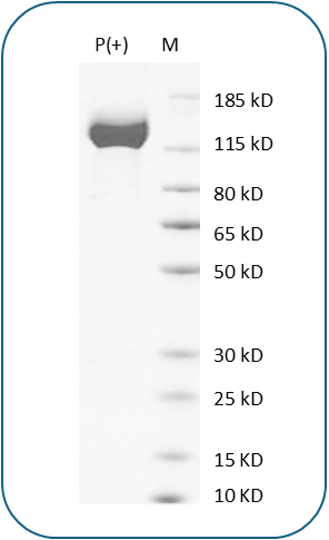 | Molecular Weight | This protein has a predicted molecular weight of 101.7 kDa. Under DTT-reducing conditions, the protein migrates at approximately 120-150 kDa on SDS-PAGE. |